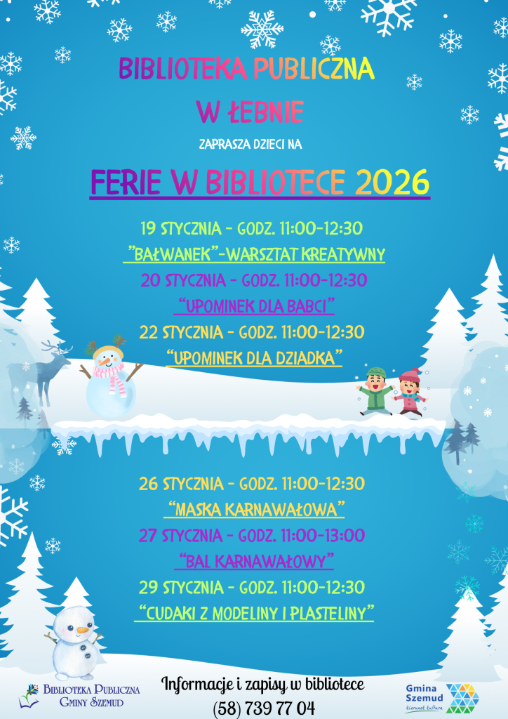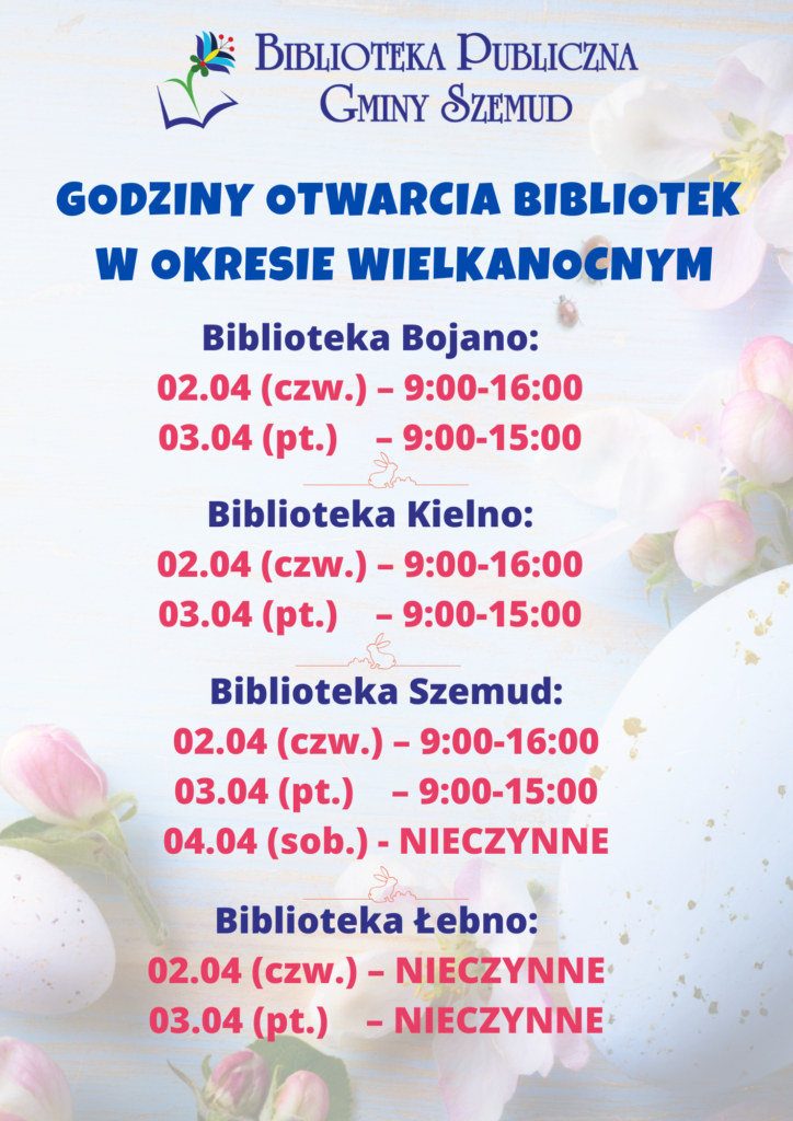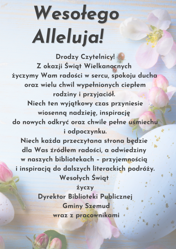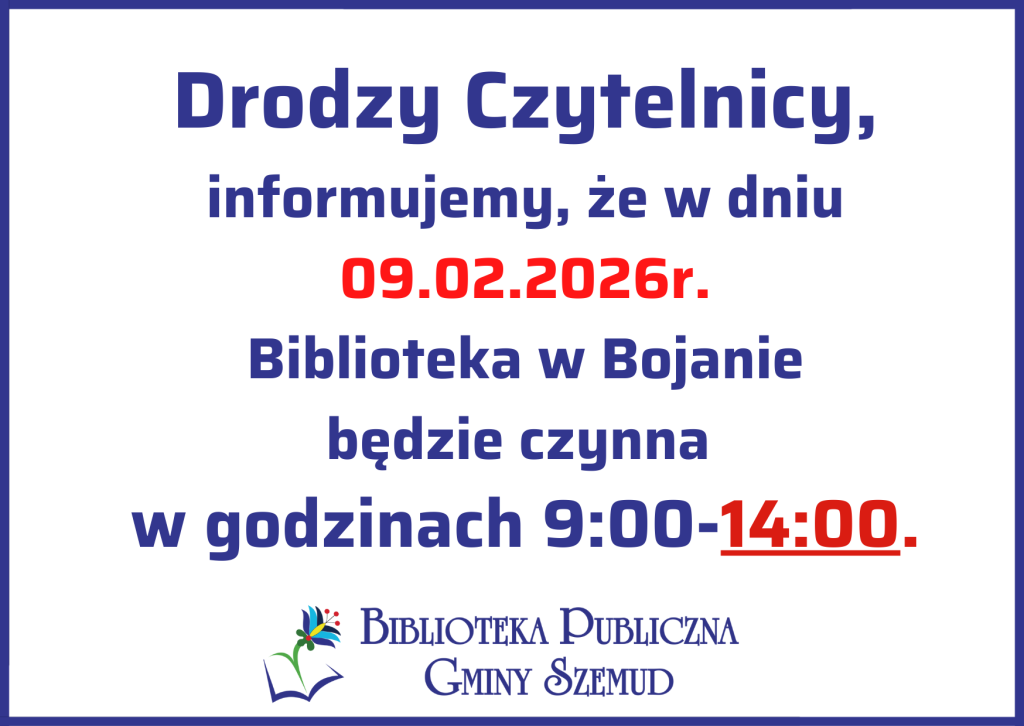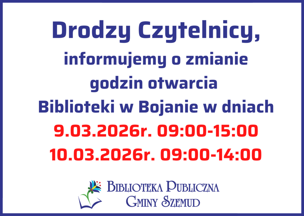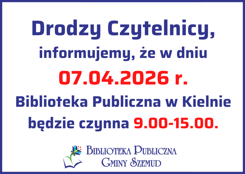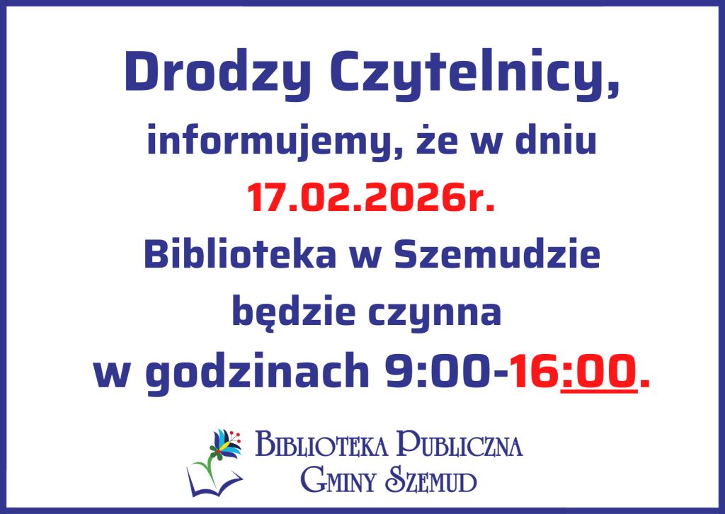 W celu uzyskania kodu prosimy o osobistą wizytę w bibliotece bądź wiadomość na adres mailowy: szemud@bibliotekaszemud.pl Warto skorzystać!