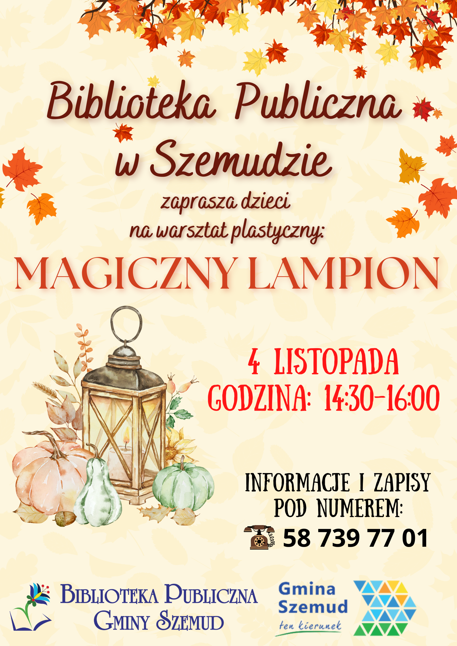 4 listopada @ 15:00 - 16:00 Jesienna girlanda – warsztat kreatywny w Bibliotece Publicznej w Kielnie Biblioteka w Kielnie ul. Oliwska 46, Kielno