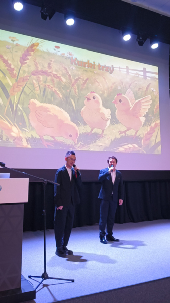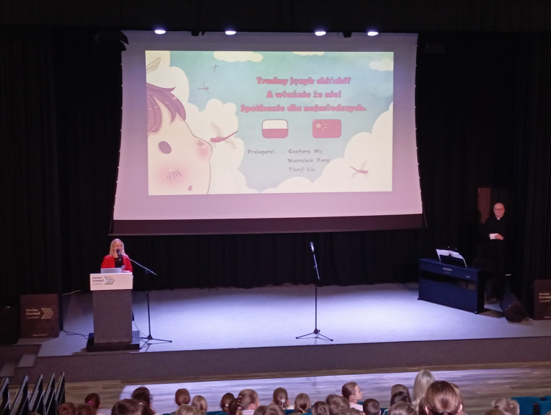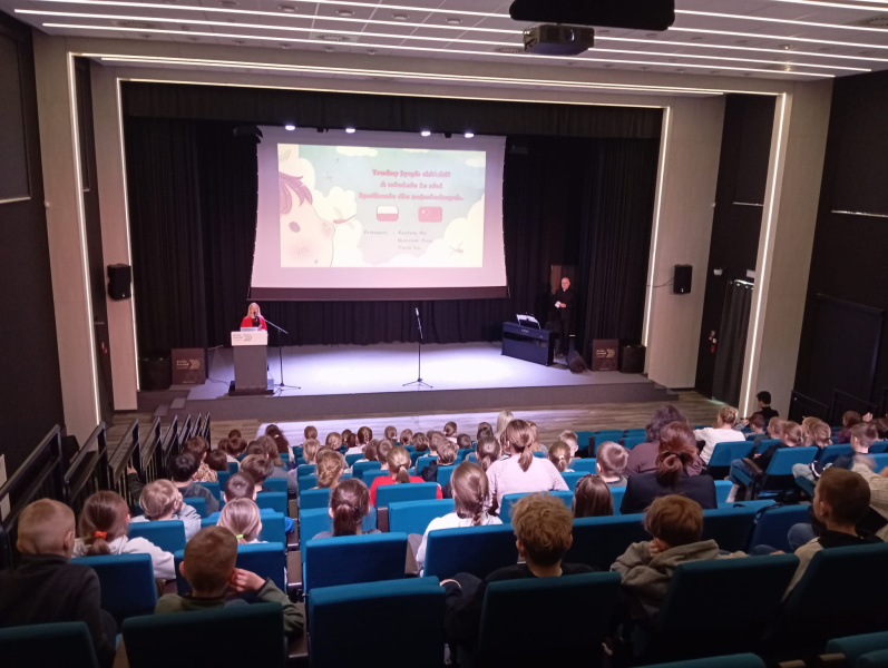 Nie zabrakło również muzycznego akcentu, który – dzięki zaangażowaniu studentów Akademii Muzycznej – stał się wyjątkowym elementem spotkania. Uczniowie mieli okazję nauczyć się i wspólnie zaśpiewać piosenkę w języku chińskim. Było to nie tylko świetne ćwiczenie językowe, ale także wspaniała zabawa integrująca wszystkich uczestników.