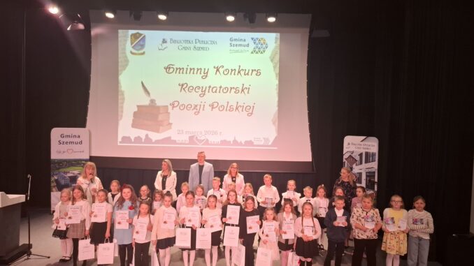 23 marca 2026 r. w Centrum Samorządowym w Szemudzie odbył się Gminny Konkurs Poezji Polskiej, organizowany od wielu lat przez Bibliotekę Publiczną Gminy Szemud. Wydarzenie to tradycyjnie wpisuje się w obchody Światowego Dnia Poezji, przypadającego na 21 marca. Święto to zostało ustanowione przez UNESCO jesienią 1999 roku, a jego główne uroczystości odbywają się w Paryżu. Celem tego dnia jest promocja czytania, pisania, publikowania oraz nauczania poezji na całym świecie.